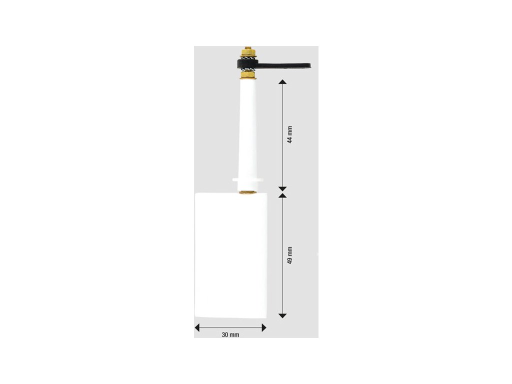 Raboesch kormidlo kompletní o rozměru listu 30x49mm. Má průchozí vložku 8mm do trupu a dvojitou řídící páku z nylonu. Závit na hřídeli usnadňuje instalaci do trupu lodi. Dodáváno s mosaznou maticí, podložkou a těsněním.
