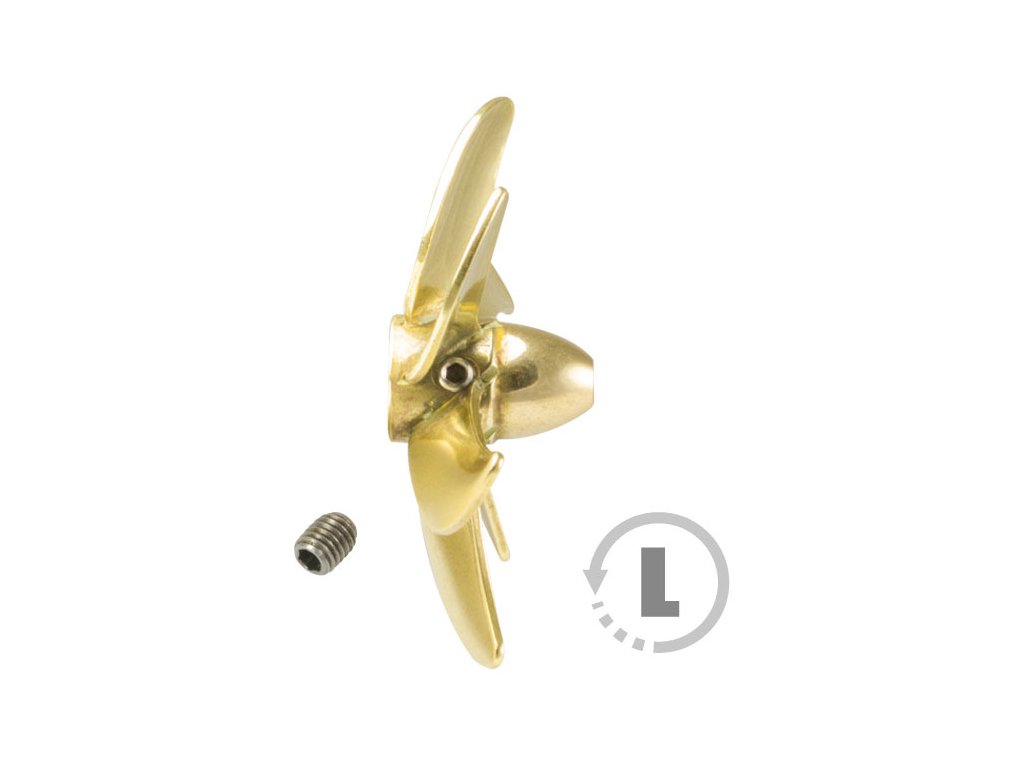 Raboesch lodní šroub Neptun 40mm M4 6L levý je Speciální lodní šroub pro ponorky. Montáž na 4mm hřídele bez závitu, upevnění stavěcím šroubem. Průměr 40mm, materiál mosaz pájená, levý, max. otáčky 13000 ot./min.