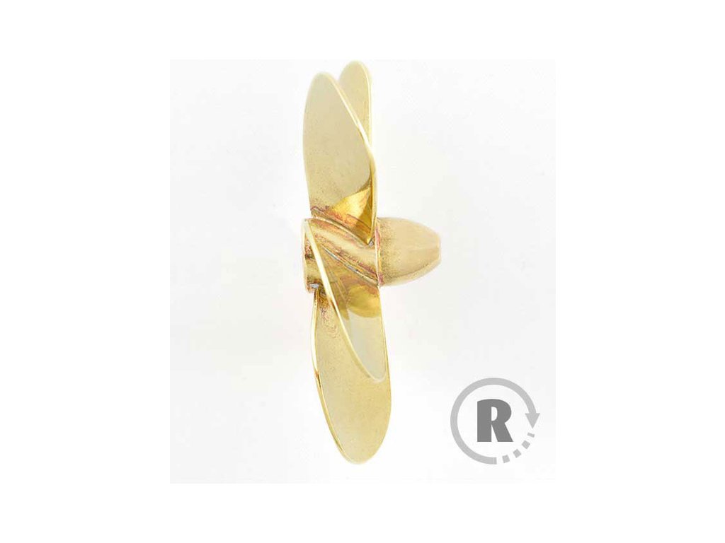 Raboesch lodní šroub tř.148, 130mm, M5, 5-listý pravý. Montáž na hřídel se závitem M5. Průměr 130mm, materiál mosaz pájená stříbrem.