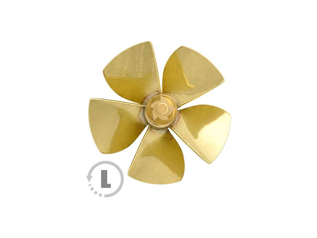 Raboesch lodní šroub tř.151 5-listý, průměr 50mm, směr otáčení levý, montáž na hřídel se závitem M4, materiál mosaz pájená stříbrem.