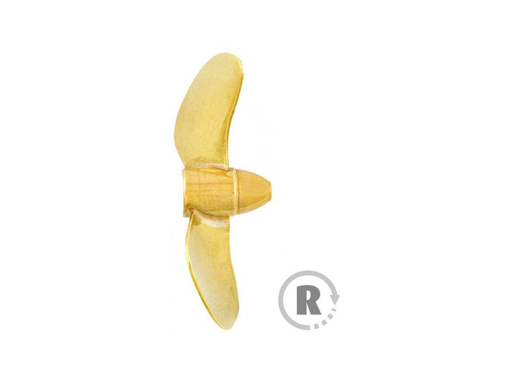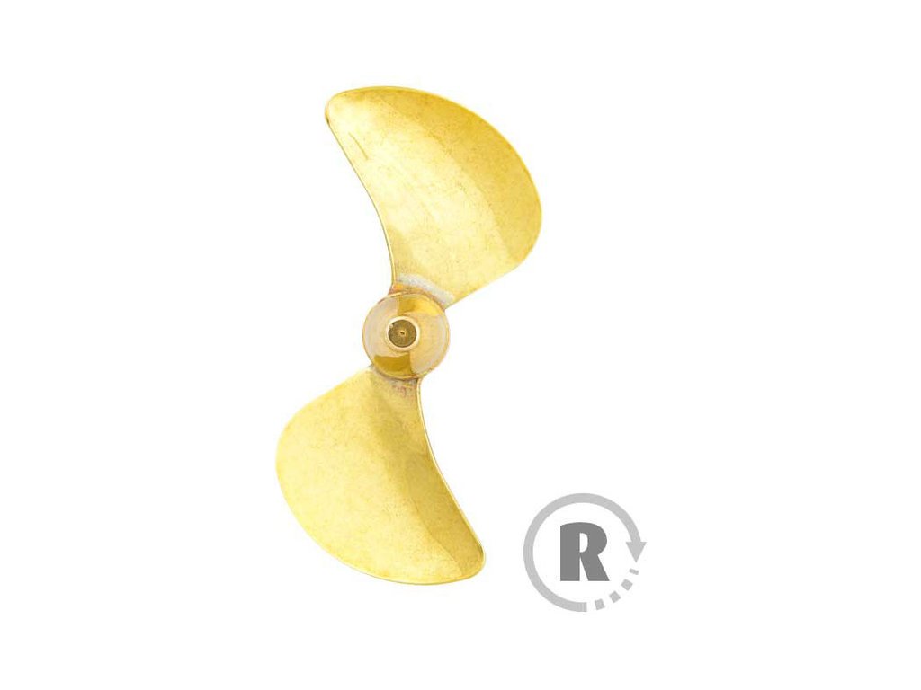 Raboesch lodní šroub tř.154 2-listý, průměr 35mm, směr otáčení pravý, montáž na hřídel se závitem M4, materiál mosaz pájená stříbrem.