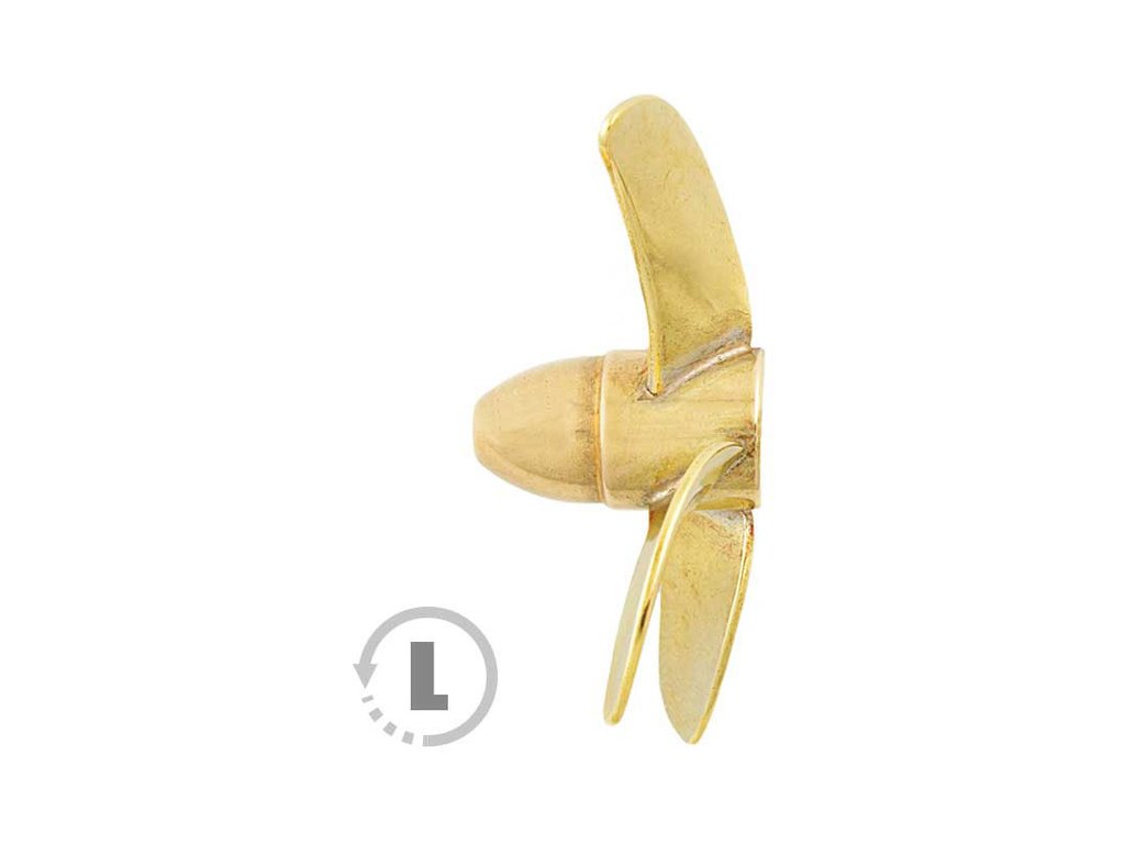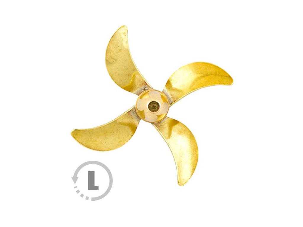 Raboesch lodní šroub tř.158 4-listý, průměr 40mm, směr otáčení levý, montáž na hřídel se závitem M4, materiál mosaz pájená stříbrem.