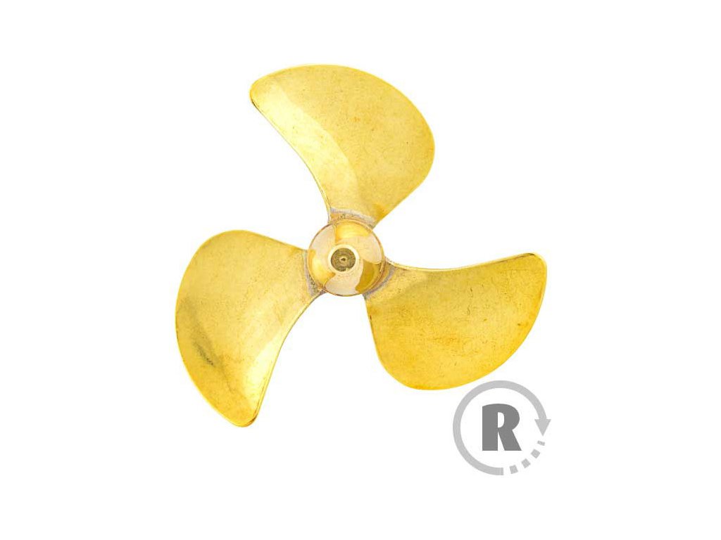 Raboesch lodní šroub tř.160 3-listý, průměr 55mm, směr otáčení pravý, montáž na hřídel se závitem M4, materiál mosaz pájená stříbrem.