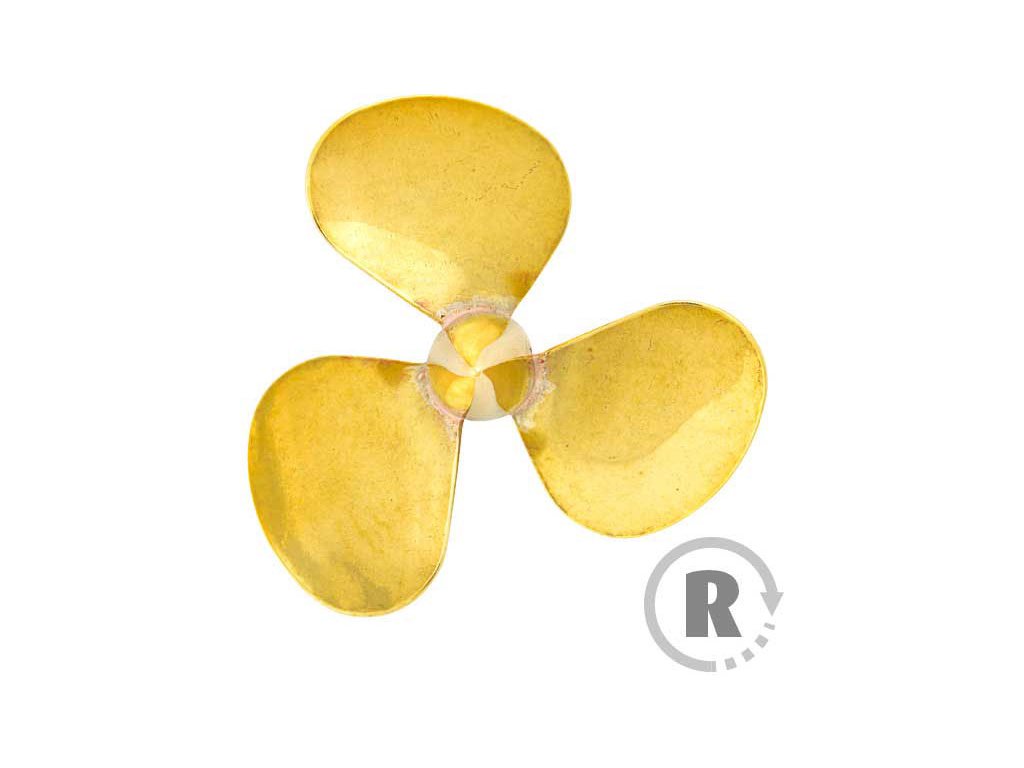 Raboesch lodní šroub tř.162 3-listý, průměr 23,5mm, směr otáčení pravý, montáž na hřídel se závitem M3, materiál mosaz pájená stříbrem.
