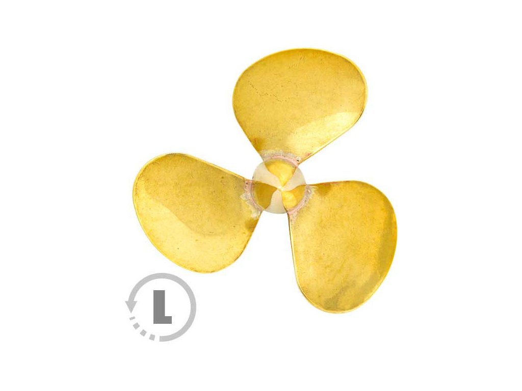 Raboesch lodní šroub tř.162 3-listý, průměr 40mm, směr otáčení levý, montáž na hřídel se závitem M4, materiál mosaz pájená stříbrem