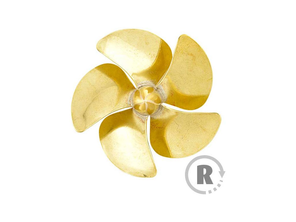 Raboesch lodní šroub tř.168 5-listý, průměr 30mm, směr otáčení pravý, montáž na hřídel se závitem M3, materiál mosaz pájená stříbrem.