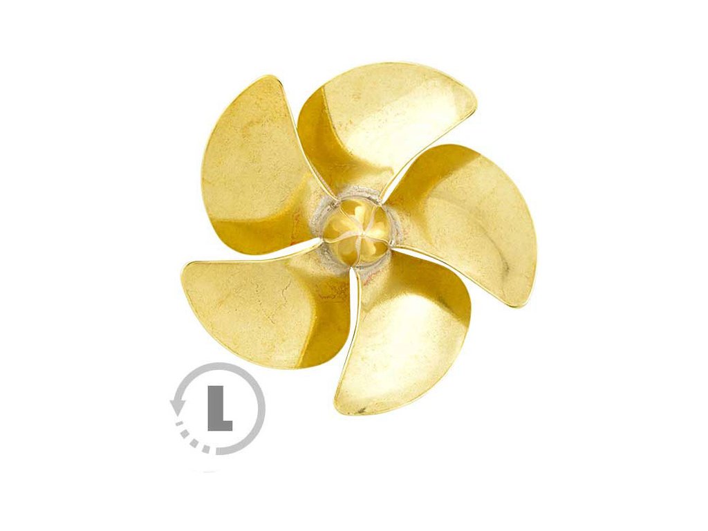 Raboesch lodní šroub tř.168 5-listý, průměr 35mm, směr otáčení levý, montáž na hřídel se závitem M4, materiál mosaz pájená stříbrem.