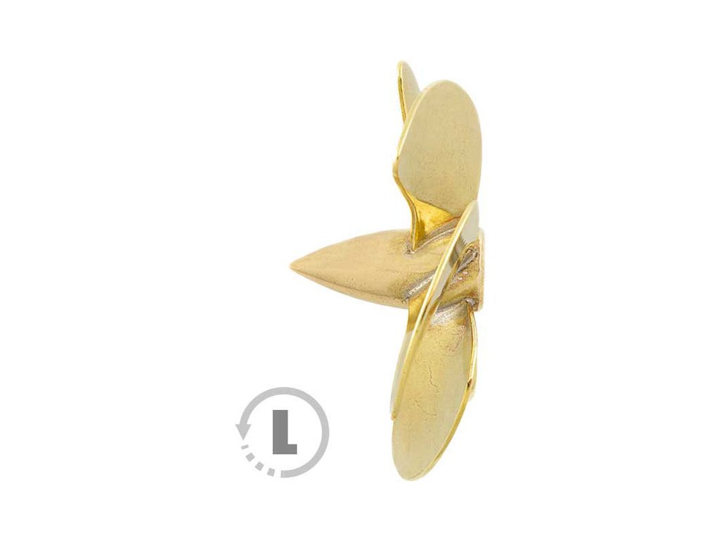 Raboesch lodní šroub tř.168 5-listý, průměr 55mm, směr otáčení levý, montáž na hřídel se závitem M4, materiál mosaz pájená stříbrem.