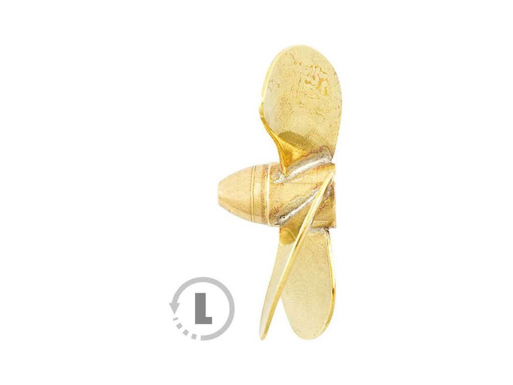 Raboesch lodní šroub tř.170 4-listý, průměr 55mm, směr otáčení levý, montáž na hřídel se závitem M4, materiál mosaz pájená stříbrem.
