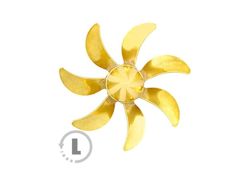 Raboesch lodní šroub tř.179 7-listý, průměr 78mm, směr otáčení levý, montáž na hřídel se závitem M5, materiál mosaz pájená stříbrem.