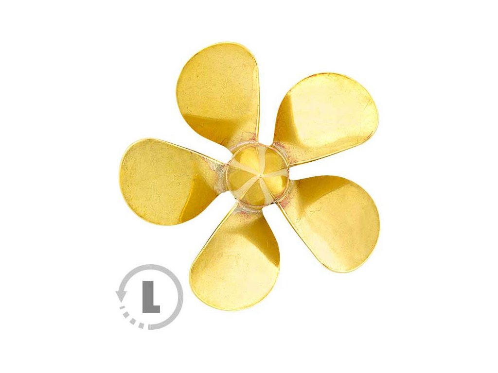 Raboesch lodní šroub tř.181 5-listý, průměr 85mm, směr otáčení levý, montáž na hřídel se závitem M5, materiál mosaz pájená stříbrem.