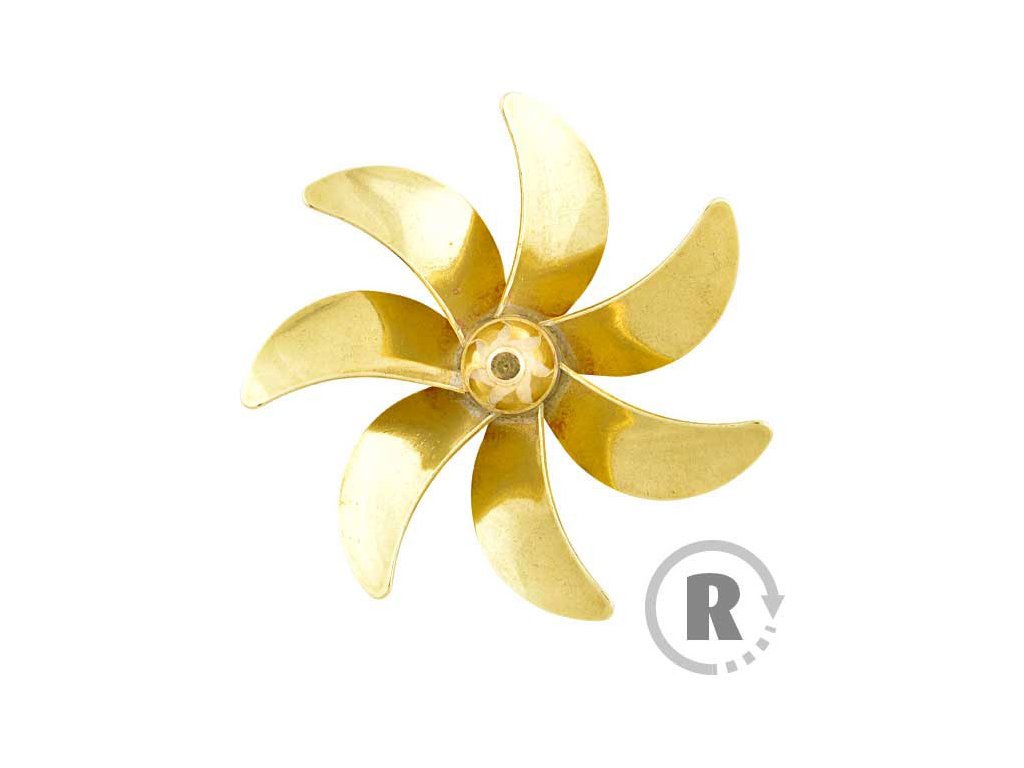 Raboesch lodní šroub tř.185 7-listý, průměr 65mm, směr otáčení pravý, montáž na hřídel se závitem M4, materiál mosaz pájená stříbrem.