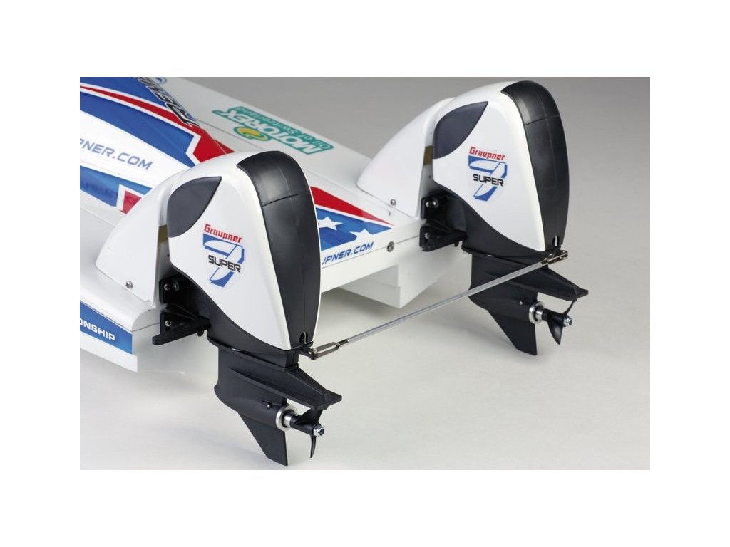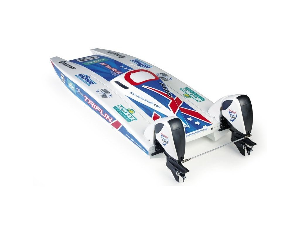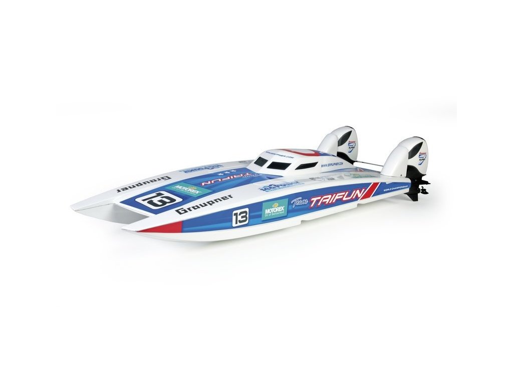 Nová závodní kočka s názvem Typhoon je čistokrevným závodním katamaránem se dvěma přívěsnými speciálními třídami. Motory Graupner Inline Brushless Motors ji urychlují na maximální rychlost vyšší než 70 km / h. Jako zdroj napájení je k dispozici 2x 3S Lipo.