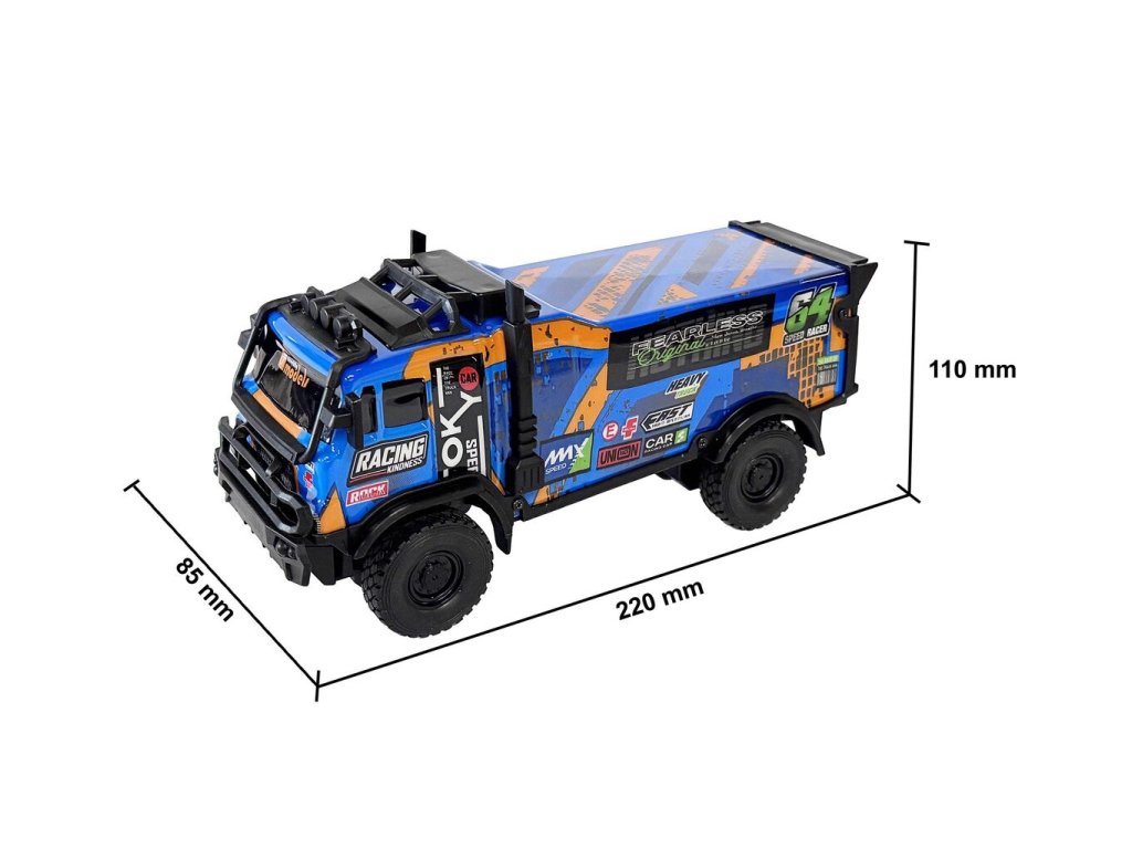 Mountain Truck Rally Van byl navržen tak, aby zvládl různé terény. Díky odolnému podvozku, 2WD pohonu a kvalitním pneumatikám (40x13 mm) si poradí s asfaltem, trávou i lehčím terénem. Jeho kompaktní rozměry (220 mm délka, 85 mm šířka, 110 mm výška) z něj dělají ideálního společníka na cesty – vejde se do batohu a můžete ho vzít kamkoli.