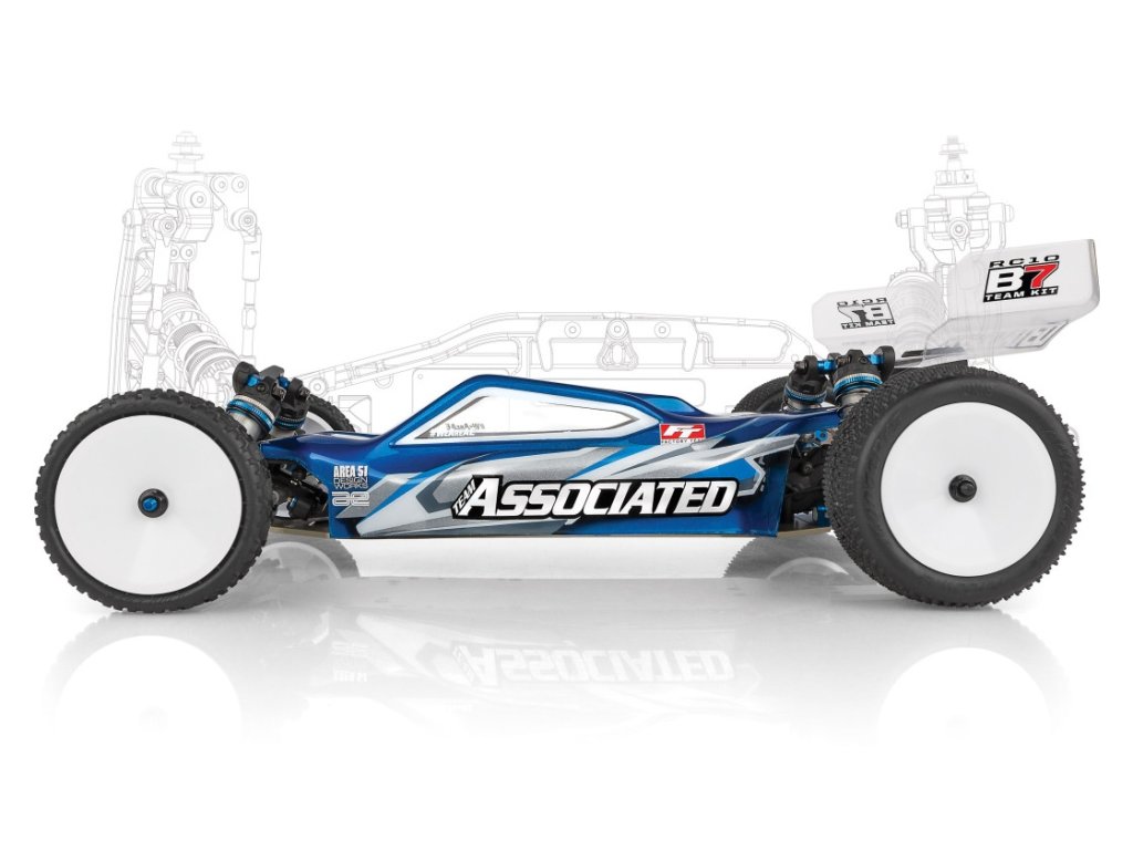 Společnost Team Associated je již 40 let na špičce v oblasti offroadových modelů 2WD v měřítku 1:10, počínaje původním modelem RC10, a je hrdá na to, že může světu představit novou generaci modelu RC10 - RC10B7. Za 40 let došlo k mnoha změnám a vývoji, přičemž každá generace byla krokem vpřed oproti té předchozí. Model RC10B7 není výjimkou a může se pochlubit novou geometrií odpružení s dlouhými rameny, rozložením elektroniky s centralizovanou hmotností, nastavitelnými bloky řízení KPI a zvýšenou laditelností celého podvozku. Tyto inovace zvýšily potenciál přilnavosti a rychlosti v zatáčkách, což vede k rychlejším časům na kolo a celkově snadnějšímu pocitu z jízdy než u předchozí generace.