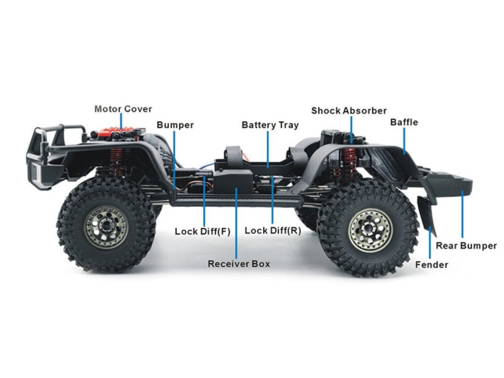 Nutné příslušenství: 4xAA baterie do vysílače, pohonná baterie 7,4V LiPo, nebo 11,1V LiPo a odpovídající nabíječ.