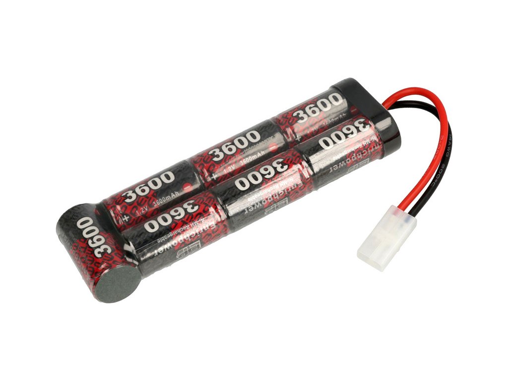 Kvalitní pohonný 7-článkový akumulátor Robitronic NiMH 8,4 V s kapacitou 3600 mAh a konektorem Tamiya. Rozměry 158 x 47 x 24 mm. Délka kabelu 9 cm.