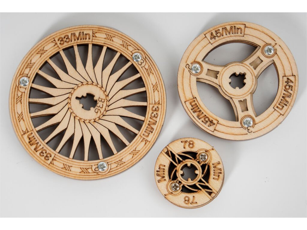 Jak zní historie? Stavebnice gramofonu z překližky. Retro designem, inspirovaným gramofonem vynalezeným Thomasem Edisonem, Vás přenese do 19. století. Není to jen model, skutečně umí přehrávat desky a je k němu i dodávána 7" gramodeska obsahující trojici písní (The Merry Gent, Memory Of A Dance, The Giant Killers). Zařízení disponuje ručně, klikou, poháněnou mechanikou a dynamem. Podporuje desky o rozměrech 17,5 cm (7") a 25 cm (10") a všechny jim odpovídající rychlosti přehrávání. Hlasitost reprodukce lze upravovat pomocí otočného ovladače. Jedinečný dárek pro všechny milovníky kutilství a hudby, ale také luxusní interiérová dekorace do pokoje či kanceláře. Skládačka je dodávána v nesloženém stavu, balena v krabici. Vybaveno detailním návodem k sestavení.