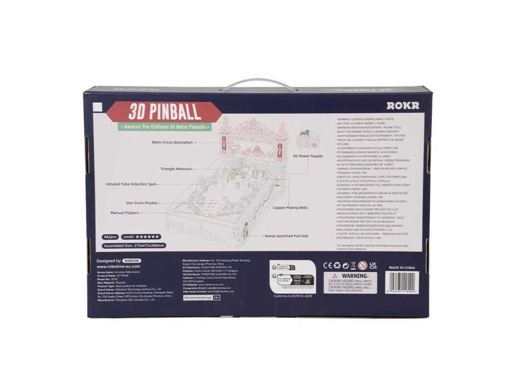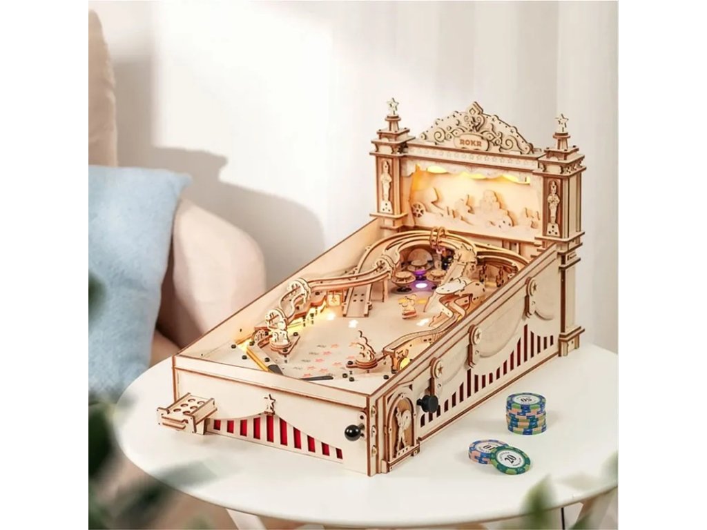 Tato skkládačka je nejen zábavný a kreativní projekt, ale také skvělý způsob, jak strávit čas s rodinou a přáteli. Jeho unikátní retro cirkusový design dodává pinballové hře nostalgickou přitažlivost. Je vhodná pro všechny kreativně založené osoby starší 14 let. Všechny přesné dílky do sebe lehce zapadnou, aby výsledek byl stabilní a odolný, a to bez použití lepidla. Skládačka je dodávána v nesloženém stavu, zabalena v krabici s detailním návodem k sestavení.