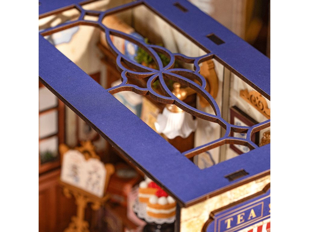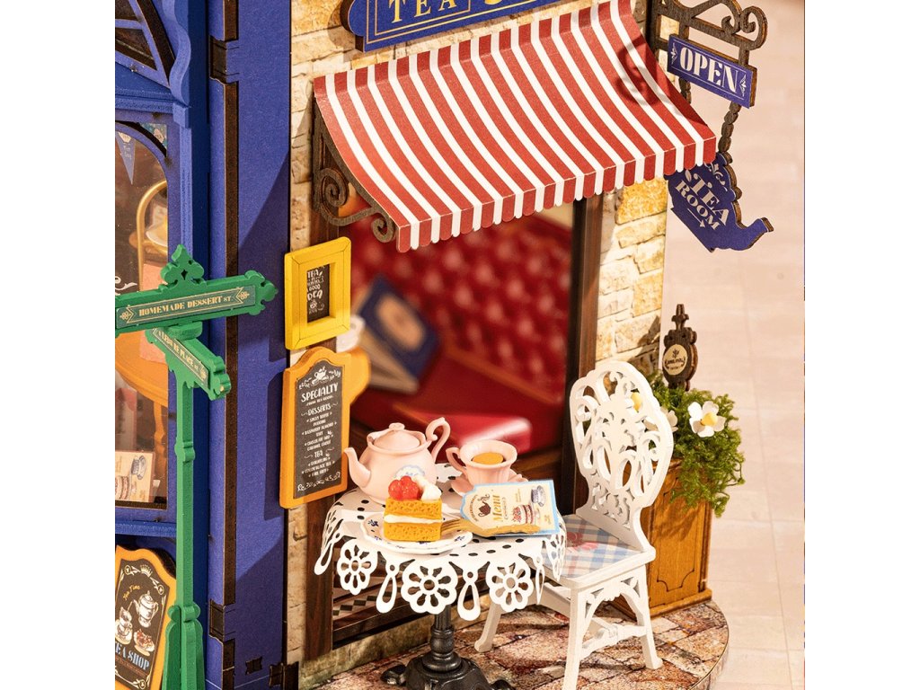 Cítíte tu vůni? Otevřete zářivě modré dveře a vejděte do anglické čajovny ve vintage stylu někde v Londýně. Usaďte se na prošívanou červenou koženou sedačku a vyberte si z menu. Dáte si lahodný koláč, pudink či dort? Nebo si raději vychutnáte šálek pravého anglického čaje venku u stolečku a budete sledovat, co se kolem děje? Přečtěte si nabídku dobrůtek pod osvětlením krásné nástěnné lampy ve tvaru květiny. Čajovna je propracována do nejmenších detailů jako dlažba, rustikální kovové cedule, plechovky s čajem, sklenice džemu či květiny na stole. Vychutnejte si atmosféru klidu a pohody, která je umocněna příjemným LED osvětlením.