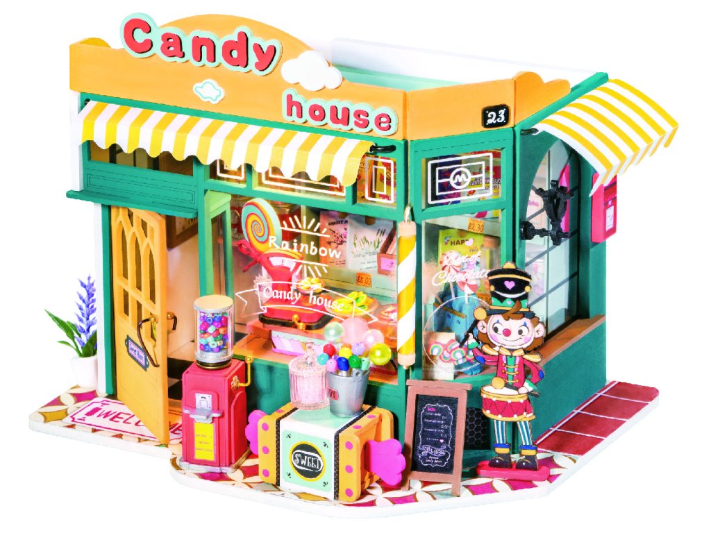 Snadná montáž, která nevyžaduje malování, znamená, že můžete okamžitě začít tvořit. Promyšlený design s průhlednými okny a otevíracími dveřmi vás vtáhne do detailní scény plné pestrých bonbónů a cukrovinek. A když zapnete LED světlo, se tato cukrárna promění v magický svět, který září přesně jako Vaše nejlepší dětské sny. Přidejte si Rolife Rainbow Candy House DIY - 3D miniaturní domeček Cukrárna, DG158, do svého života a zažijte radost z tvorby a sdílení. Ideální jako dárek, nebo jako osobní projekt, kterým si zpříjemníte dlouhé večery. Vytvořte si svůj vlastní cukrovinkový dům plný radosti a barev.