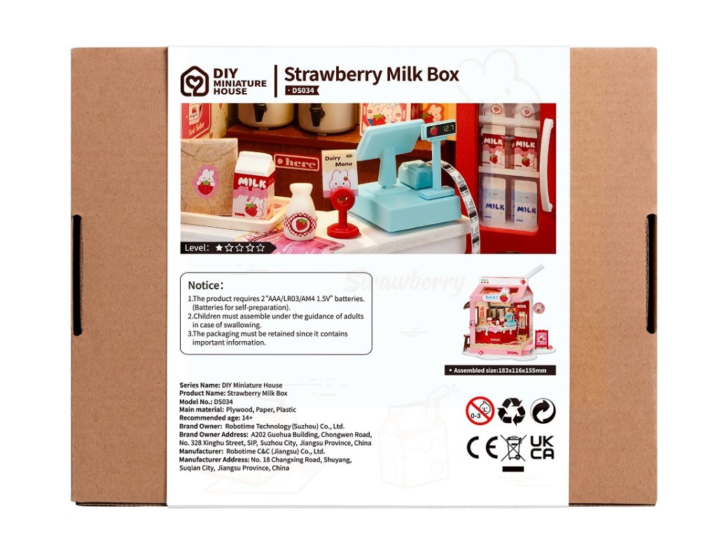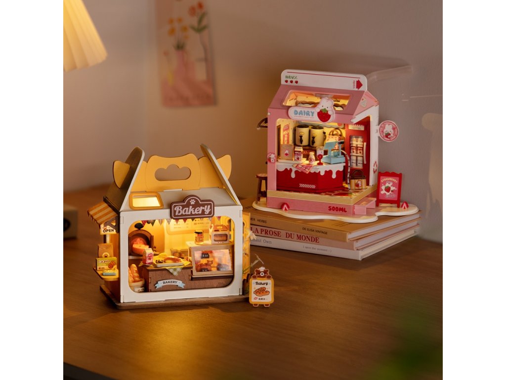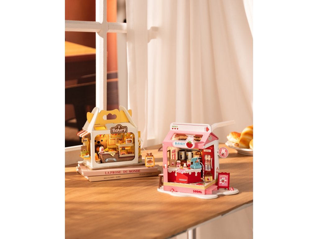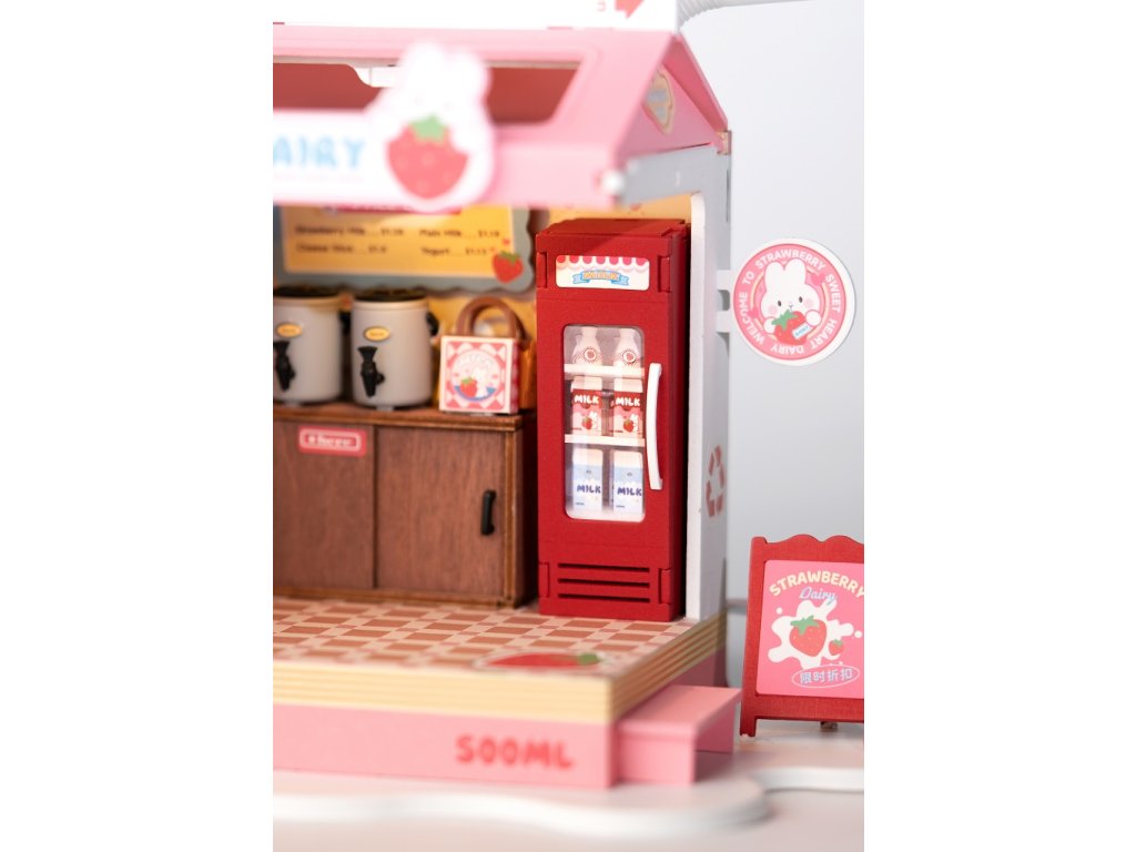 RoboTime 3D dřevěná skládačka Miniatura domečku Mléčný bar Strawberry