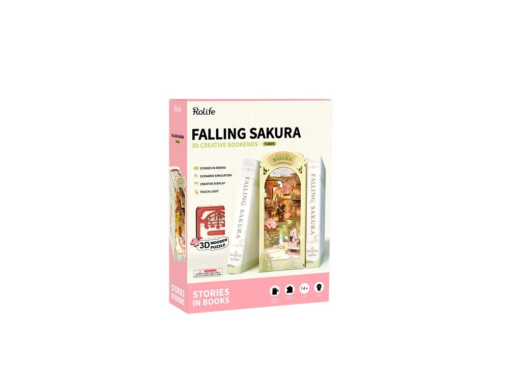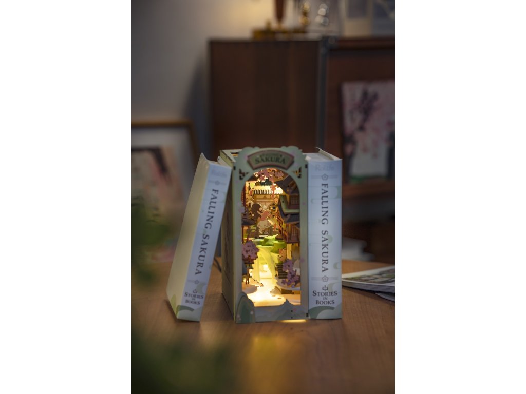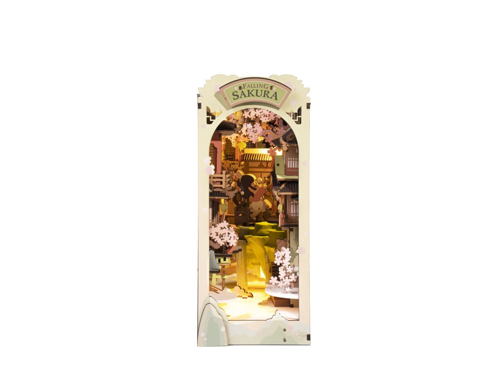 Milovníci knih a japonské kultury, představujeme vám Falling Sakura – 3D puzzle zarážka na knihy inspirovaná show třešňového květu v Japonsku. Tento unikátní produkt vám umožní přenést kousek tokijských ulic přímo do vaší knihovny. Falling Sakura je miniaturní dřevěný domeček na hřbetě knihy, který zdobí vaši knihovnu a zároveň slouží jako praktická zarážka. V balení naleznete vše, co potřebujete k vybudování krásné scény, která vás přenese přímo do srdce japonského jara. A co je na tom nejlepší? Domeček je osvětlený teplým LED světlem, které zdůrazňuje detaily a dodává celé scéně úžasnou atmosféru.