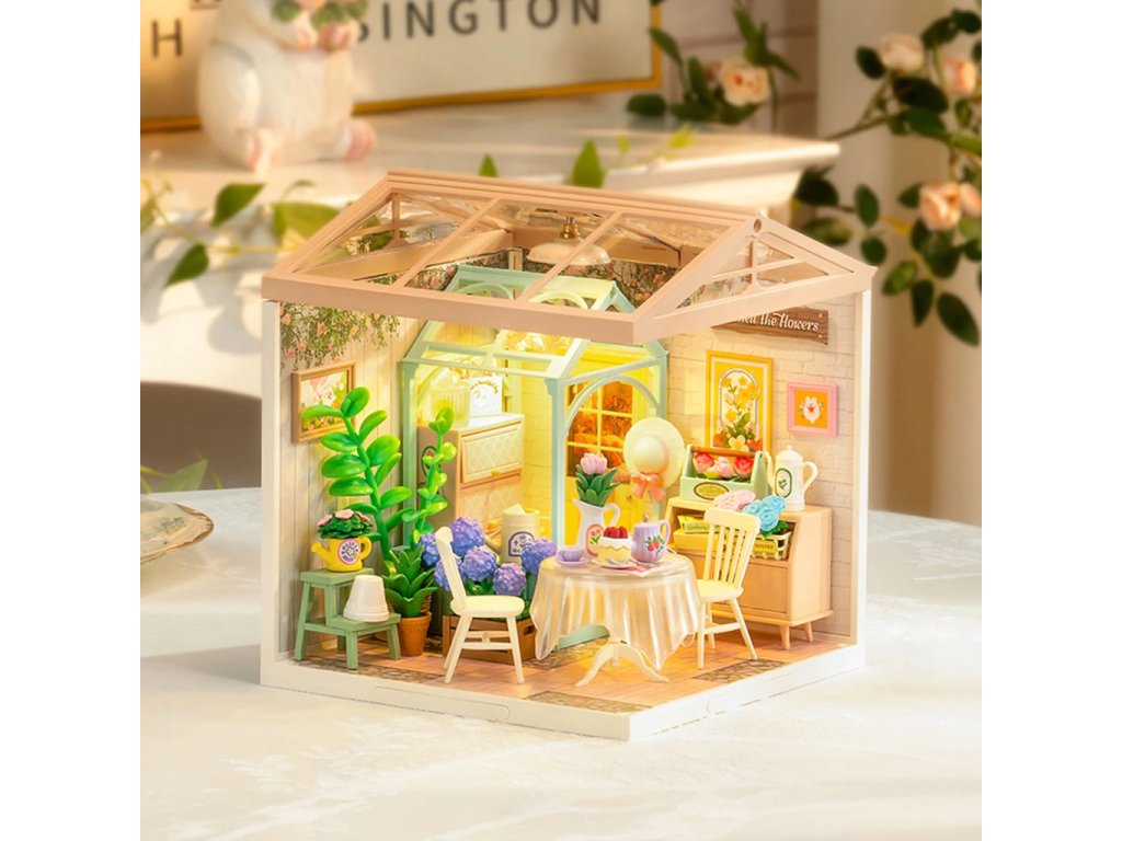 RoboTime Miniatura domečku Posezení s čajem v kvetoucí zahradě