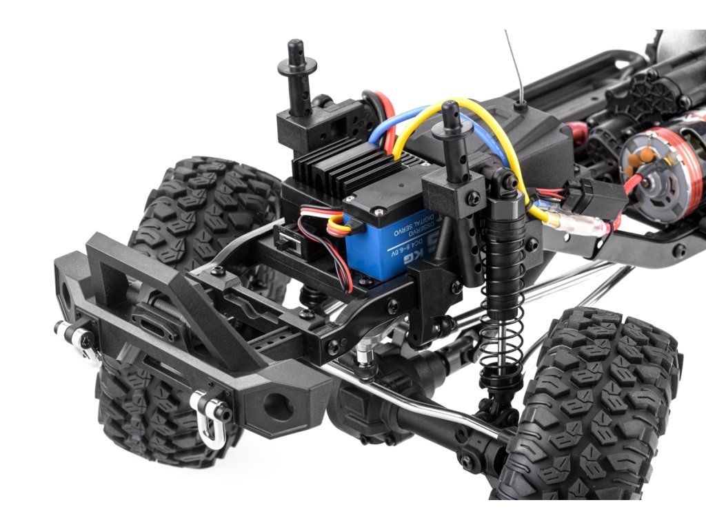 RTR set obsahuje stejnosměrný motor velikosti 540, voděodolný regulátor Hobbywing a 15kg servo s kovovými převody. 2,4GHz rádio dostalo také aktualizaci.