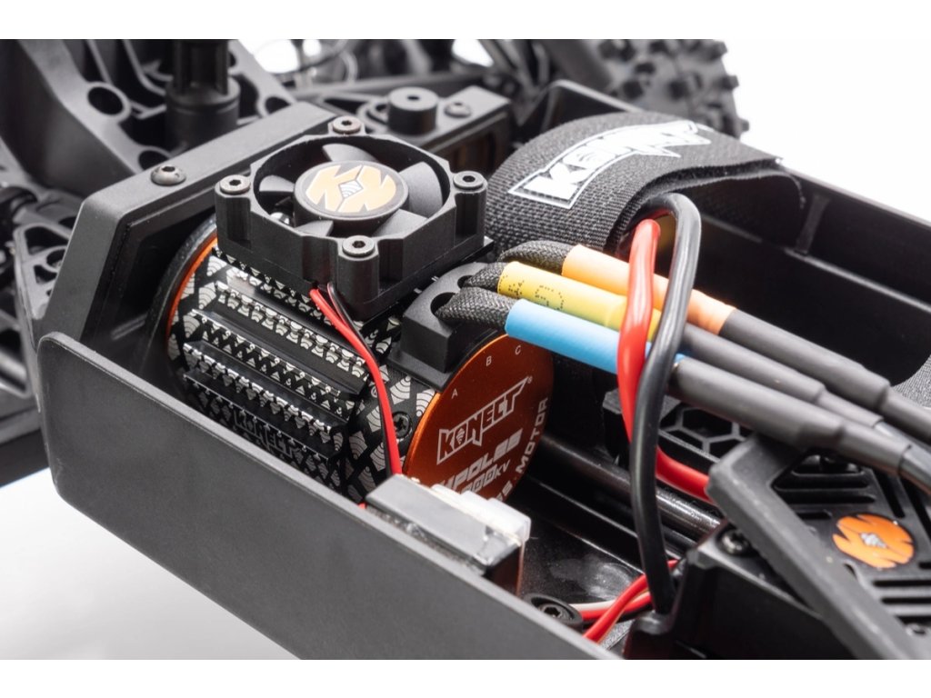Tato buggy má pohonné ústrojí s náhonem na všechna kola, elektroniku Konect by Hobbywing a je vybavena velkoobjemovými celohliníkovými tlumiči.