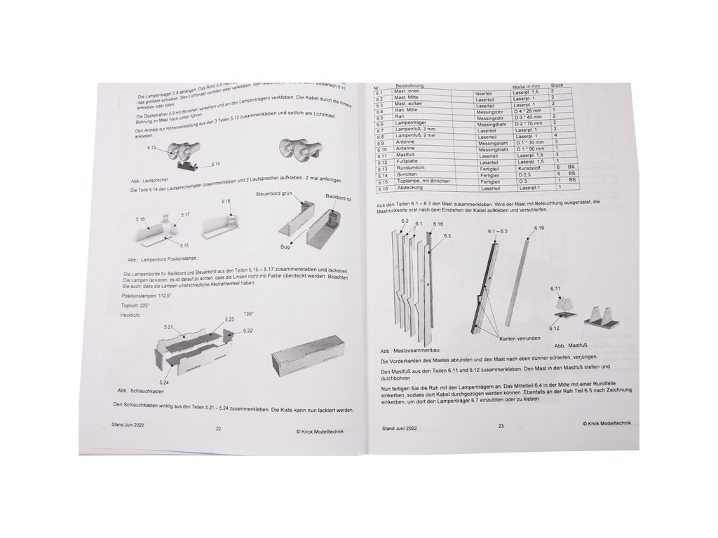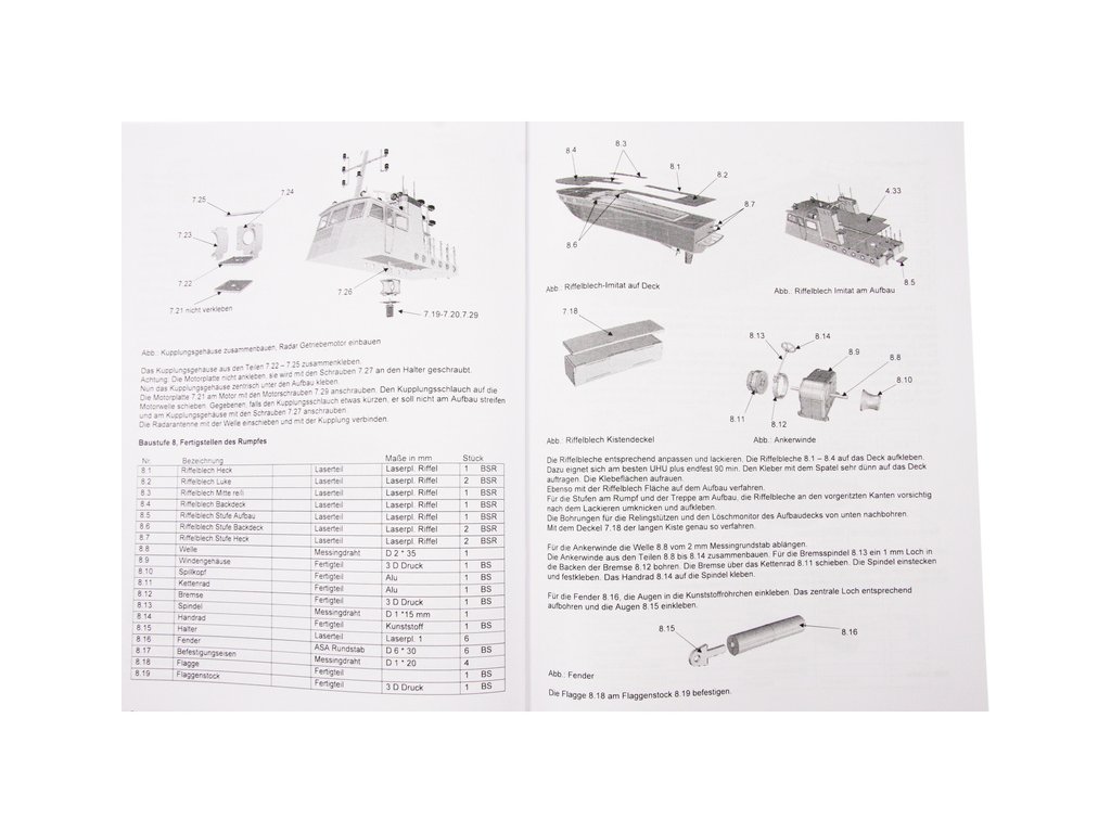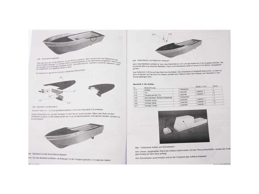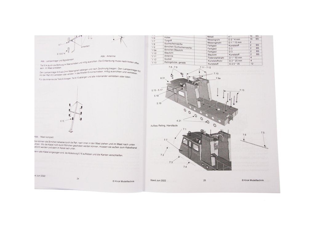 Set obsahuje podrobný manuál s postupem stavby a obrázky jednotlivých detailů. Na výkrese jsou nakresleny montážní sestavy, jejich kompletace a to včetně montáže příslušenství. Vícejazyčný postup stavby rámcově upravuje logické sestavení jednotlivých komponentů.