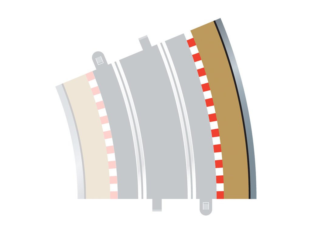 Vnější okraj zatáčky 22,5° pro autodráhu Scalextric - rozšíření trati. Velikost: 4x 22,5°.Doplňkové parametry