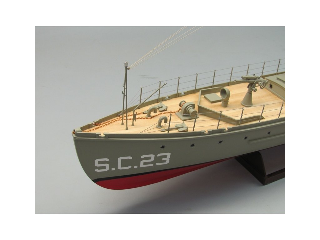 Tip: Fotoalbum ze stavby stíhače ponorek najdete zde: fotoalbum SC-23 Model pohání střídavý elektromotor AXI 2212/20 s obousměrným regulátorem Hobbywing QUICRUN 16BL30 a s napájením z A123 LiFe dvoučlánku 2500 mAh pro 1-1,5 hodiny plavby. Tento model obsadil 6. místo v kategorii F4A na mistrovství světa lodních maket NAVIGA 2024 v maďarském Sarkadu.