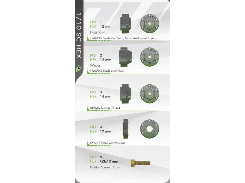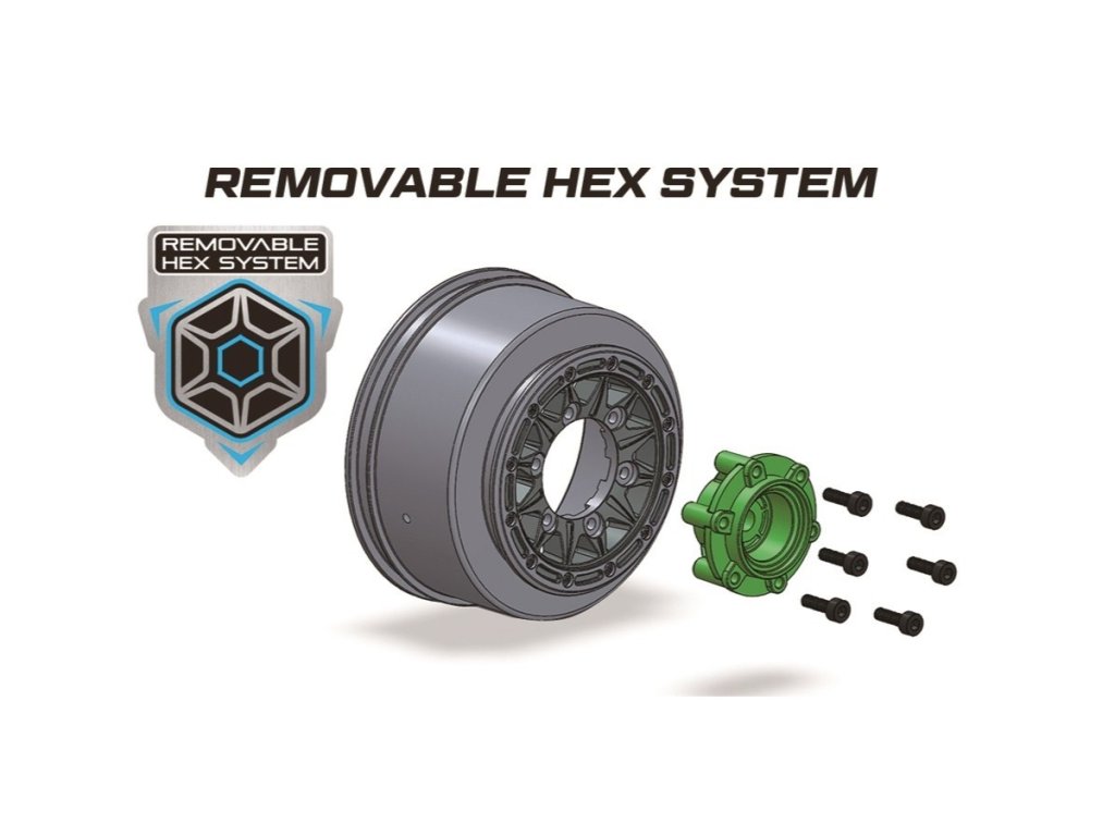 Systém odnímatelných hexů je nová funkce, která vám umožní vybrat si z různých středů, tak aby kola pasovala na vaše RC auto. Ty jsou součástí balení a lze je snadno nasadit a sejmout pomocí přiložených šroubků.