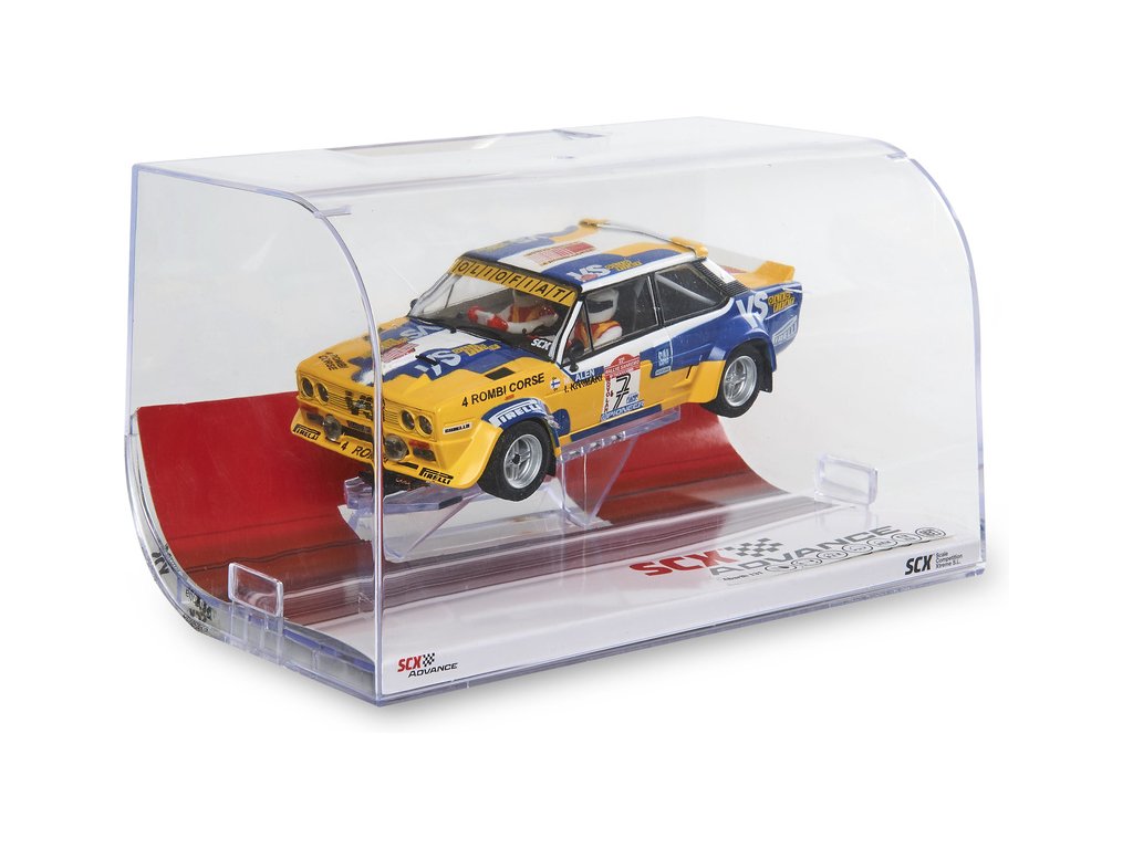Dráhové autíčko SCX Advance Abarth 131 M. Alen v měřítku 1:32, verze 2.0, pro digitální autodráhy SCX Advance. Autíčko je vybaveno LED osvětlením. Na podvozku se nachází přepínač digital / analog - autíčko lze tedy používat na digitální autodráze SCX Advance i na analogové autodráze SCX Original.