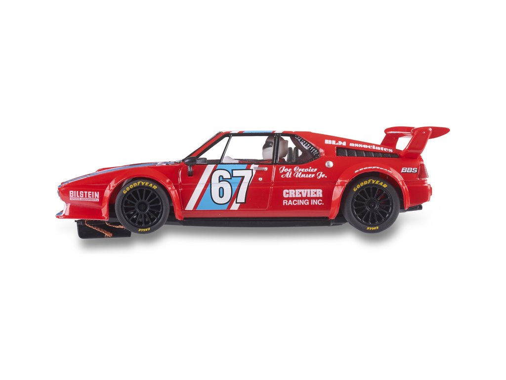 Dráhové autíčko SCX Advance BMW M1 Crevier Racing v měřítku 1:32, verze 2.0, pro digitální autodráhy SCX Advance. Autíčko je vybaveno LED osvětlením. Na podvozku se nachází přepínač digital / analog - autíčko lze tedy používat na digitální autodráze SCX Advance i na analogové autodráze SCX Original.