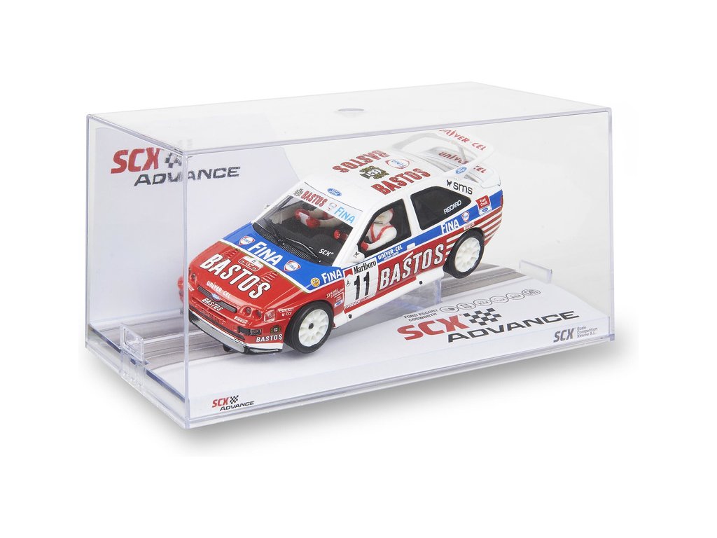 Dráhové autíčko SCX Advance Ford Escort Cosworth Ypres 95 v měřítku 1:32, verze 2.0, pro digitální autodráhy SCX Advance. Autíčko je vybaveno LED osvětlením. Na podvozku se nachází přepínač digital / analog - autíčko lze tedy používat na digitální autodráze SCX Advance i na analogové autodráze SCX Original.