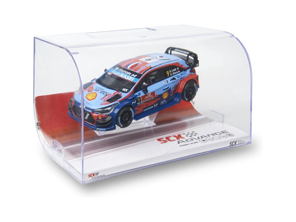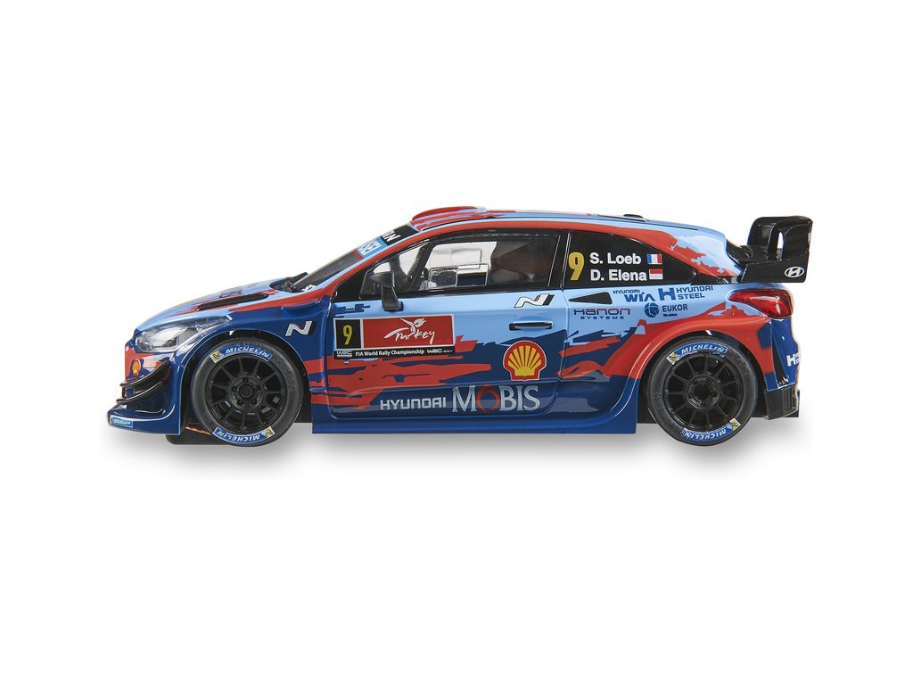 Dráhové autíčko SCX Advance Hyundai i-20 WRC Loeb Türkiye v měřítku 1:32, verze 2.0, pro digitální autodráhy SCX Advance. Autíčko je vybaveno LED osvětlením. Na podvozku se nachází přepínač digital / analog - autíčko lze tedy používat na digitální autodráze SCX Advance i na analogové autodráze SCX Original.