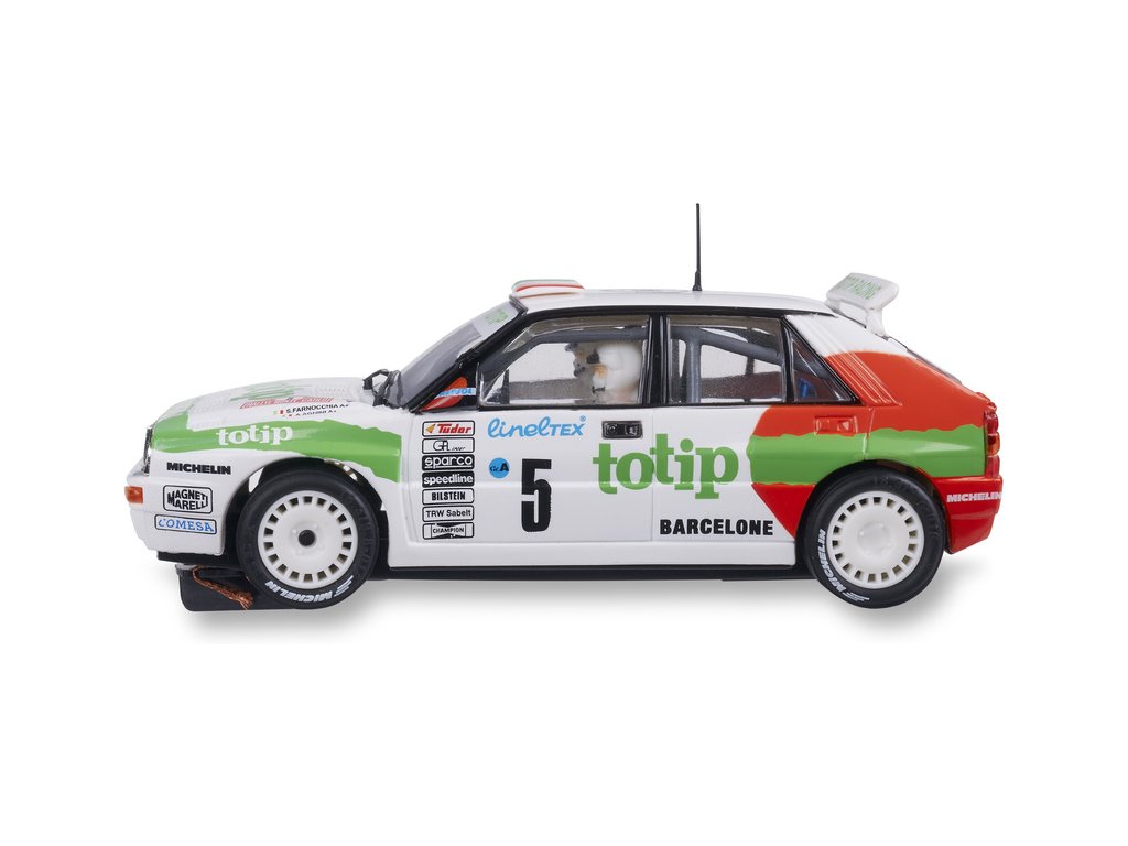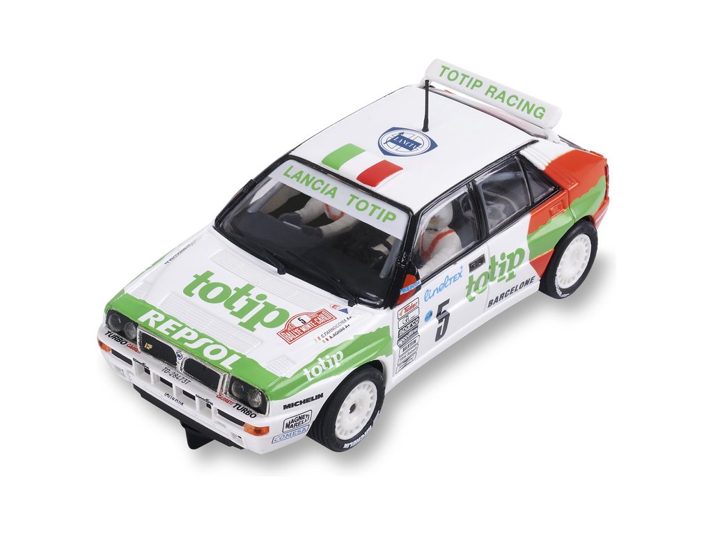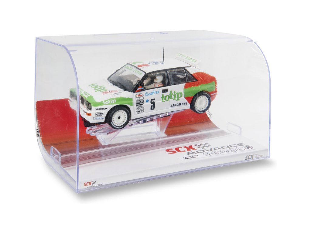 Dráhové autíčko SCX Advance Lancia Delta Integrale Totip v měřítku 1:32, verze 2.0, pro digitální autodráhy SCX Advance. Autíčko je vybaveno LED osvětlením. Na podvozku se nachází přepínač digital / analog - autíčko lze tedy používat na digitální autodráze SCX Advance i na analogové autodráze SCX Original.