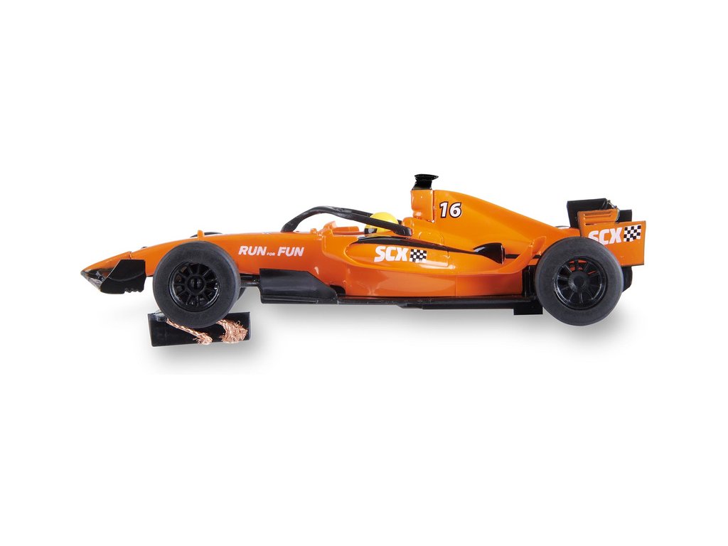 Dráhové autíčko SCX Compact F1 oranžová v měřítku 1:43, pro autodráhy SCX Compact.