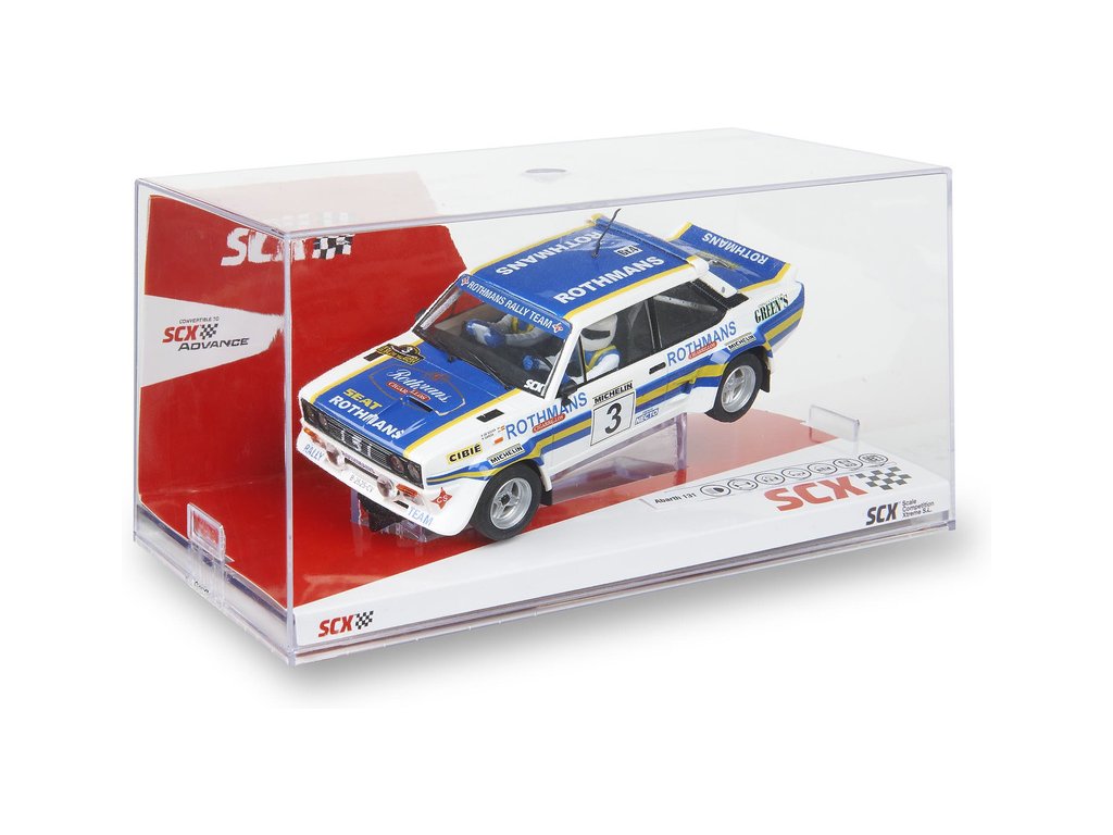 Dráhové autíčko SCX Original Abarth 131 - Talavera 1982 v měřítku 1:32, pro analogové autodráhy SCX Original. Autíčko je vhodné také pro analogové autodráhy Carrera 1:32 a Ninco 1:32. Autíčko je vybaveno LED světly.