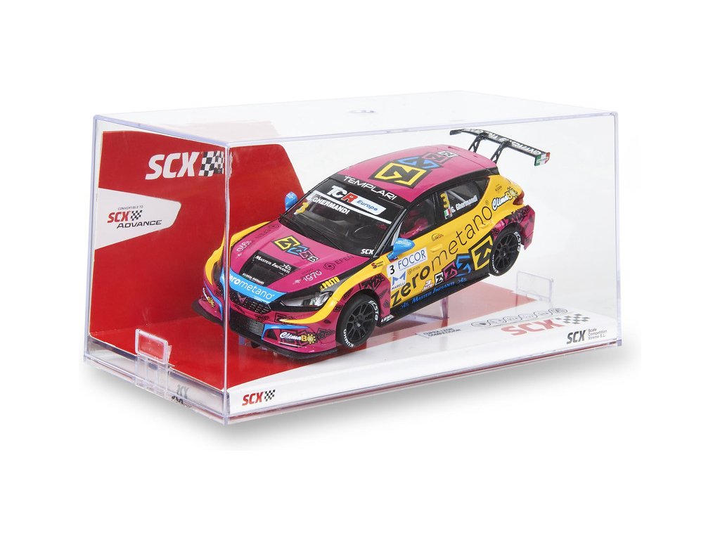 Dráhové autíčko SCX Original Cupra León Competición Zero Metano v měřítku 1:32, pro analogové autodráhy SCX Original. Autíčko je vybaveno LED světly.