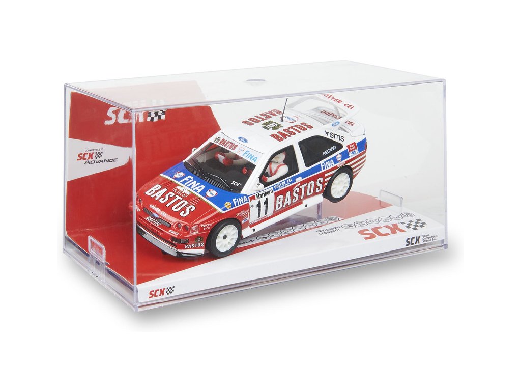 Dráhové autíčko SCX Original Ford Escort Cosworth - Ypres 1995 v měřítku 1:32, pro analogové autodráhy SCX Original. Autíčko je vybaveno LED světly.