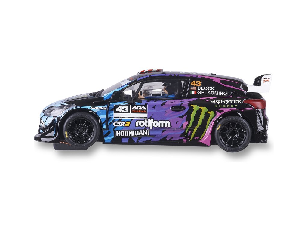 Dráhové autíčko SCX Original Hyundai i-20 WRC Block v měřítku 1:32, pro analogové autodráhy SCX Original. Autíčko je vybaveno LED světly.