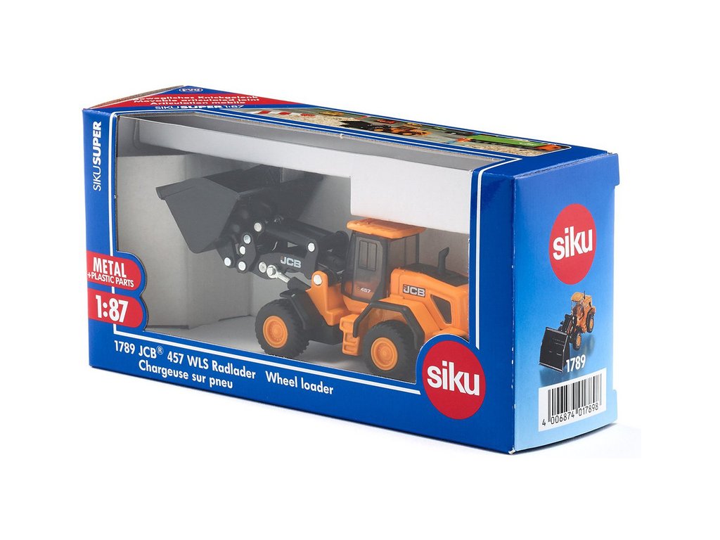 Kovový model nakladače JCB 457 WLS v měřítku 1:87 od značky Siku. Model obsahuje kloubové zatáčení, přední pohyblivé rameno s výklopnou lžící a maketami pístů, pogumovaná kola. Vhodné pro hraní i sběratelství. Kvalitní zpracování z kovu a plastu.