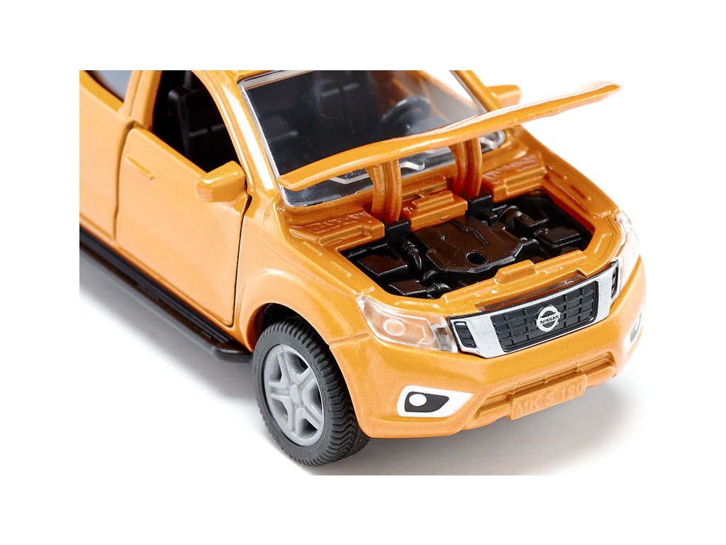 Kovový model auta Nissan Navara v měřítku 1:50. Otevírací boční dveře, kapota a čelo korby. Průhledná okna. Metalický oranžový lak. Gumová kola. Vhodné pro hraní i sběratelství. Kvalitní zpracování z kovu a plastu.