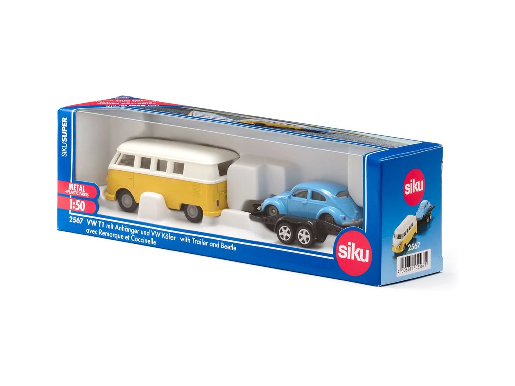 SIKU Super - Volkswagen T1 s tahačem a Beetlem 1:50