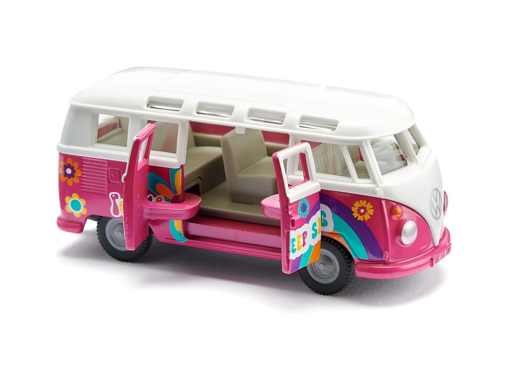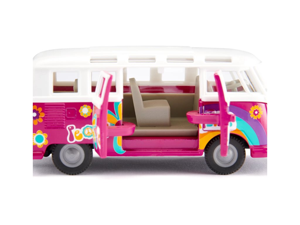 Kovový model minivanu Volkswagen T1 v provedení Samba v měřítku 1:50. Legendární model z 50. let, oblíbený v komunitě hippies, jako model s detailním zpracováním a otevíracími dveřmi na pravé straně. Vhodné pro hraní i sběratelství. Kvalitní zpracování z kovu a plastu.