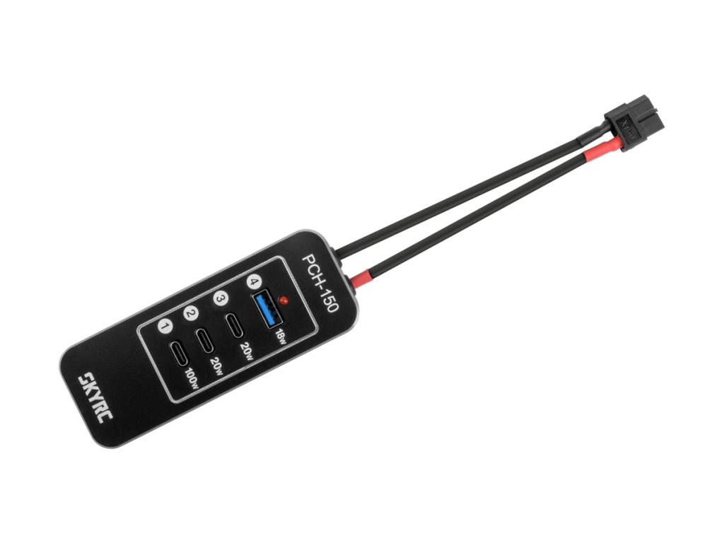 Napájecí a nabíjecí ústředna PCH-150 umožňuje po připojení ke kompatibilnímu nabíječi současně napájet několik mobilních zařízení s celkovým výstupním výkonem až 100 W. Doplňkové příslušenství pro nabíječe SkyRC T1000 Maestro a D200neo.