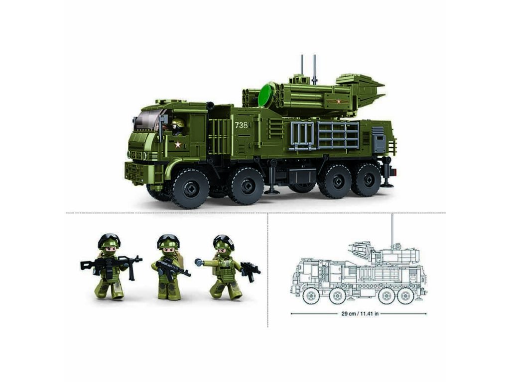 Potěšte své děti dárkem, který jim udělá radost a zároveň rozvíjí jejich kreativitu a technické dovednosti. Pro všechny, kdo se zajímají o válku a válečná vozidla, je tady protivzdušný systém Pantsir S1S. Inovativní stavebnice Sluban je možno kombinovat s podobnými stavebnicemi mnoha dalších významných výrobců. Jsou vyráběny z kvalitního, nezávadného a odolného ABS plastu. Každá stavebnice je opatřena návodem k sestavení a balena v pestře potištěné papírové krabičce.